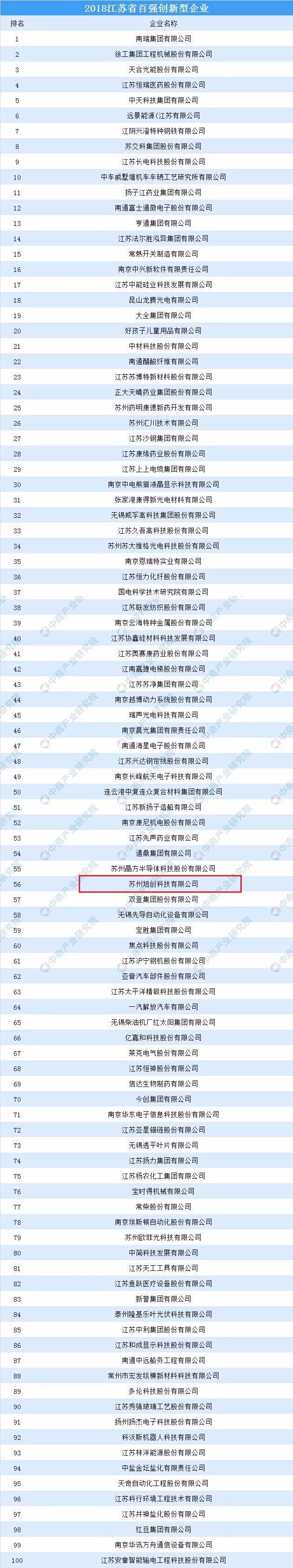 近日,江苏省科技发展战略研究院向社会发布“2018江苏省百强创新型企业”名单。苏州九游会老哥俱乐部登录科技有限公司(下称“苏州九游会老哥俱乐部登录”)位列榜单第56位。榜单显示,苏南、苏中、苏北地区分别有72家、18家和10家企业上榜。